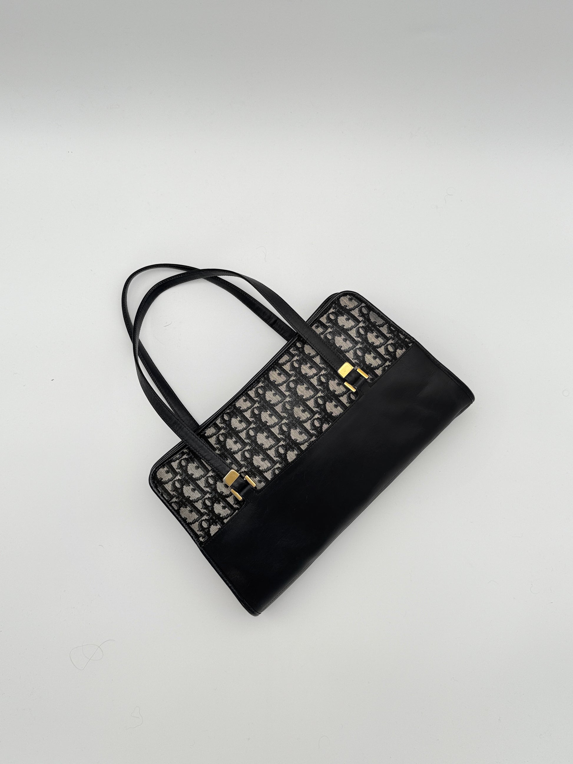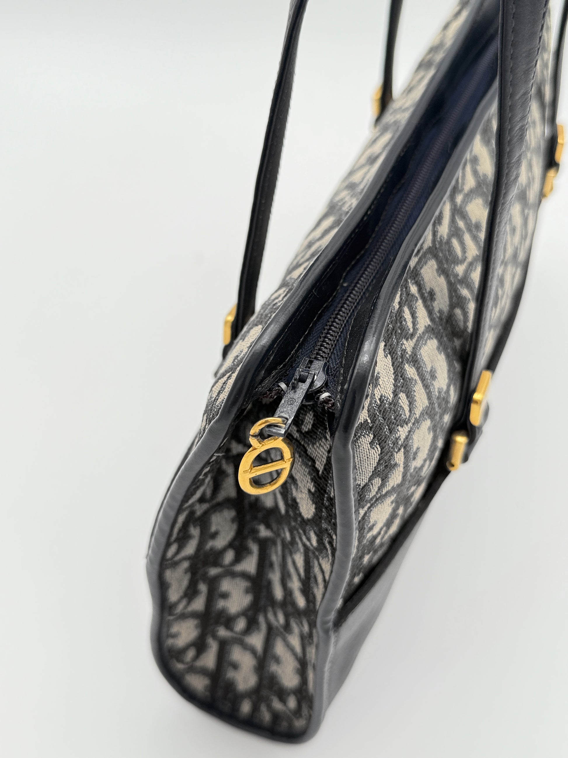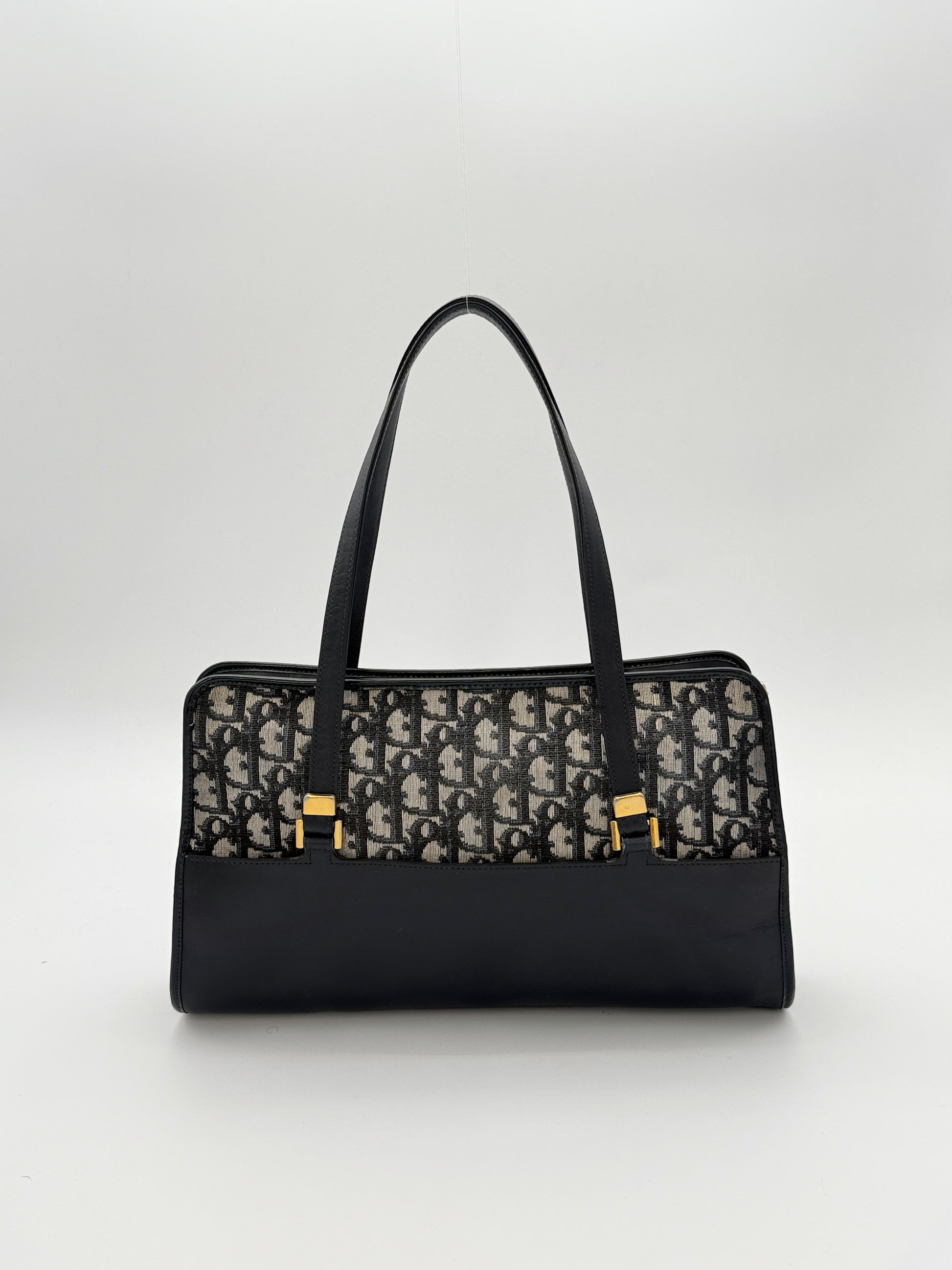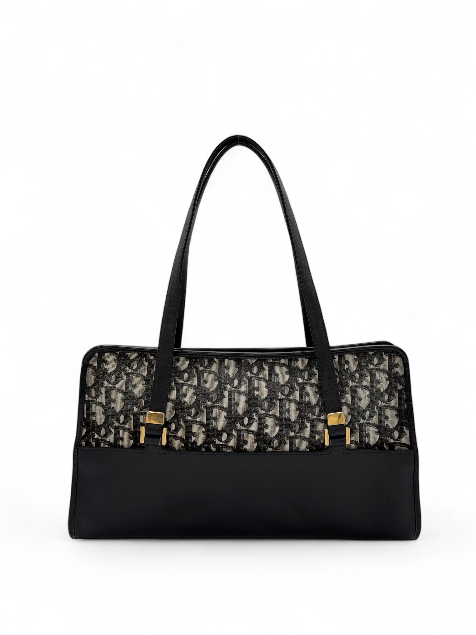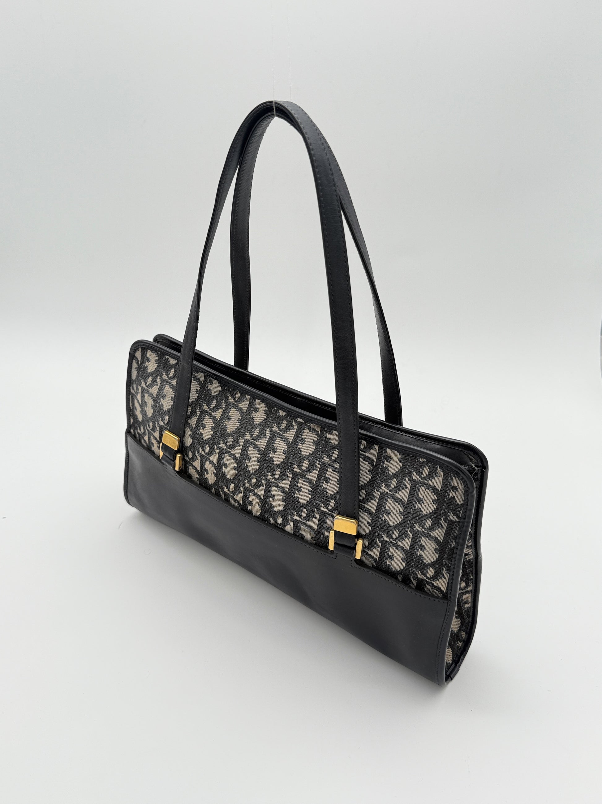 Crafted in signature Dior Oblique canvas with smooth black leather trim, this shoulder bag is a timeless addition to any wardrobe. Gold-tone hardware, structured double handles and the iconic “CD” zipper pull give it a refined edge. Elegant yet understated, it’s the kind of piece that elevates even the simplest outfit day or night.