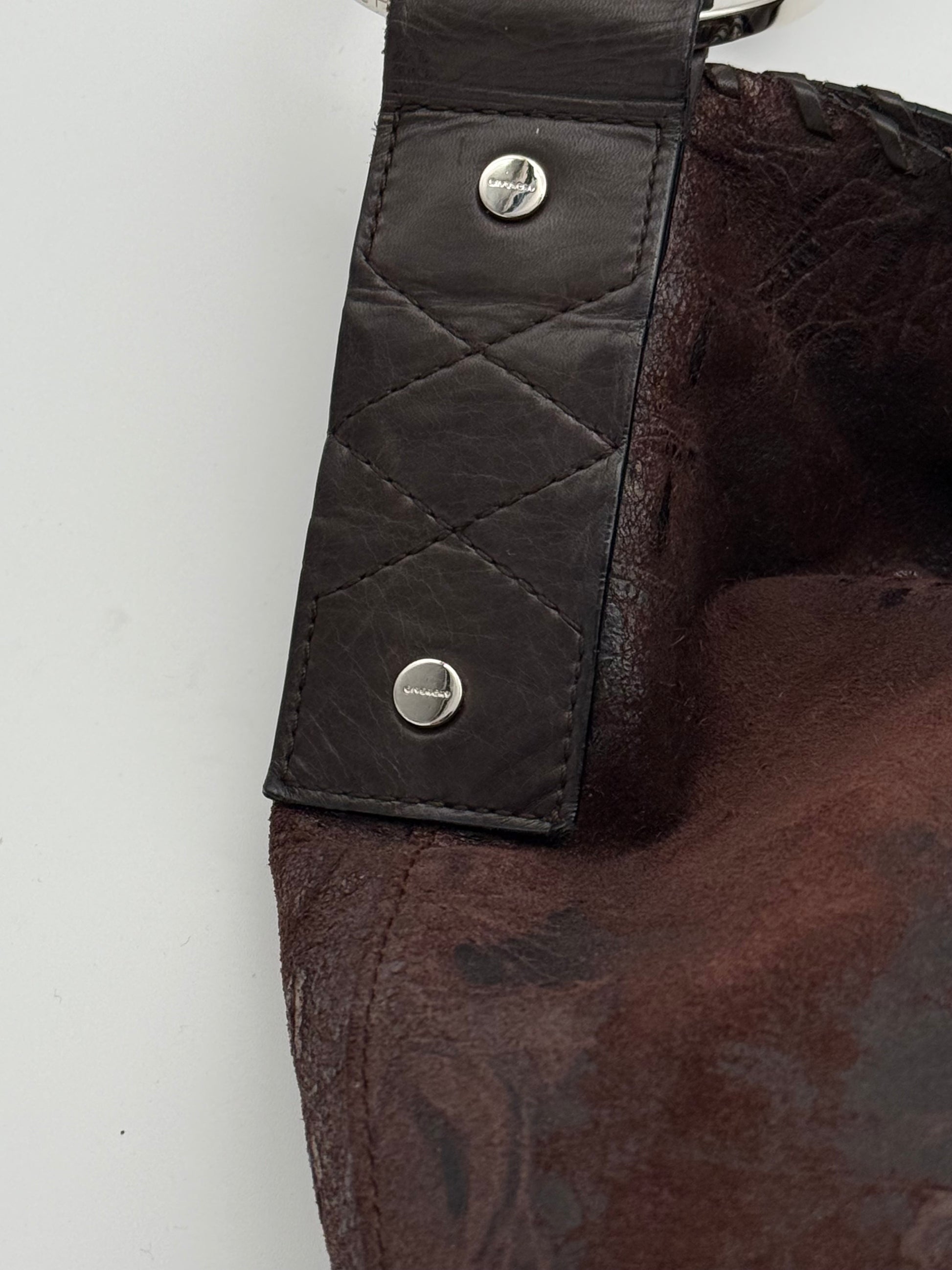 Interior clean and well-kept. The exterior features intentional leather texture variations as part of the original design.