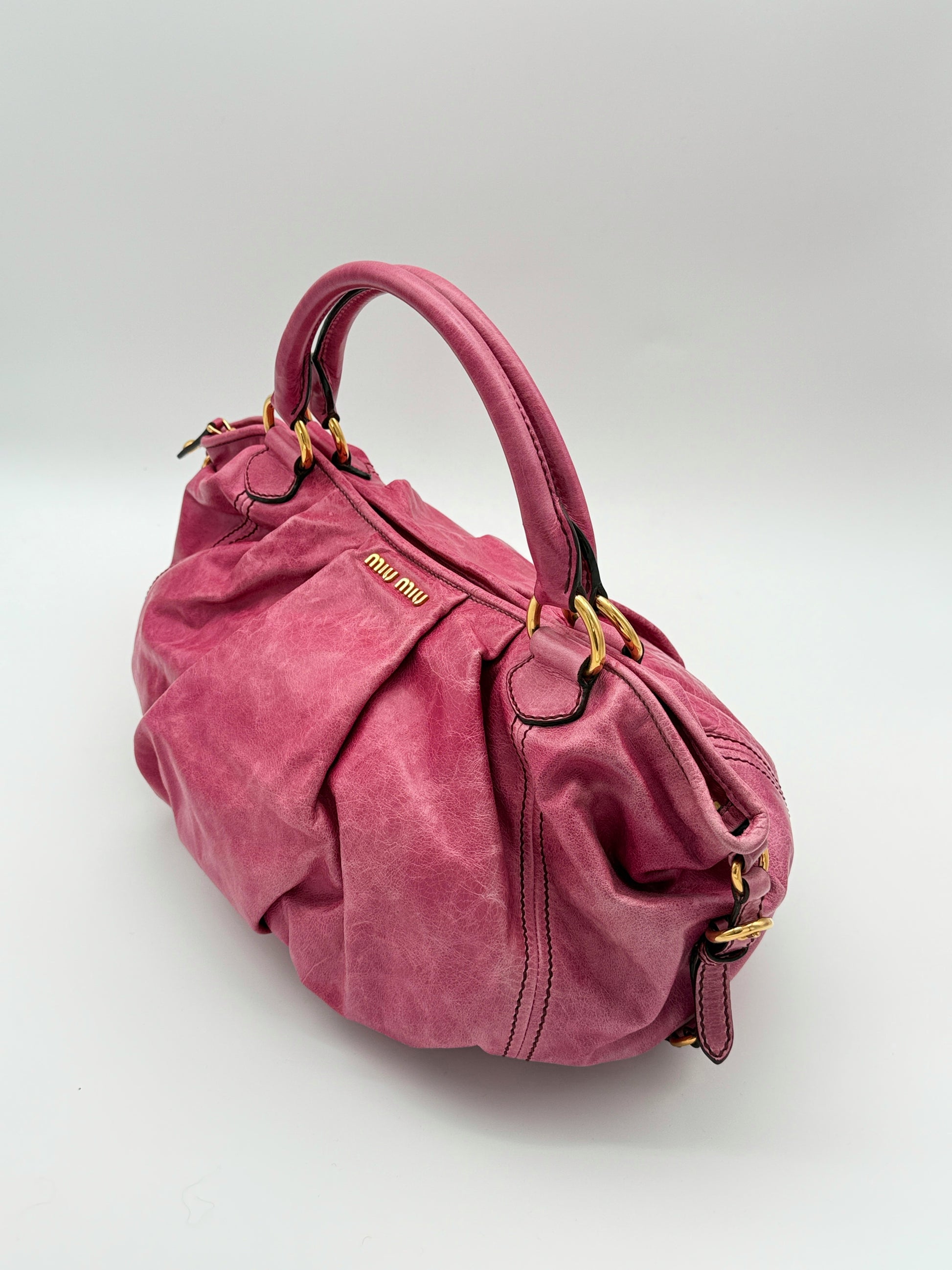 Miu Miu Archive Pink Pleated Leather Bag