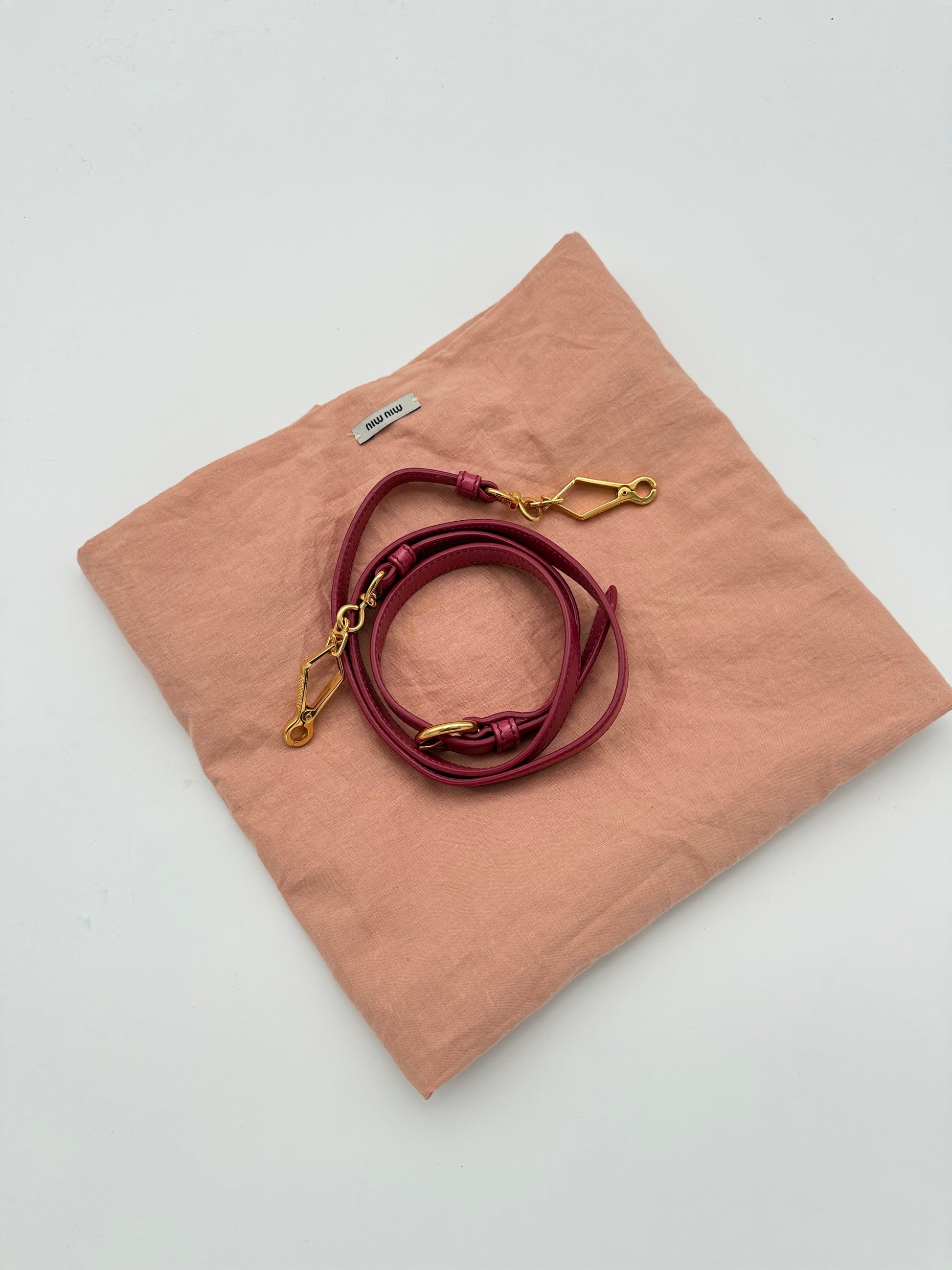 Comes with: Original Miu Miu dust bag, adjustable leather shoulder strap, authenticity card and booklet.